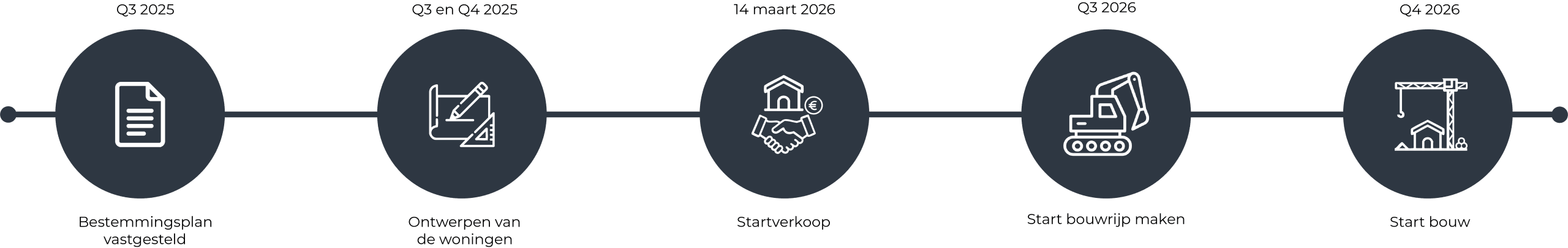 Op dit moment de voorbelasting van het terrein aangebracht. Deze zomer starten we met het bouwrijp maken van het plangebied. Naar verwachting zal in Q4 de aannemer starten met het bouwen van de woningen.